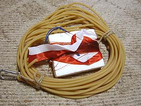 こ、っこれは面白いと思い落札してみた。ところが肝心のフックをRocky君に付け忘れてしまいBBさんのスカイウォークを打ち上げるのに使っただけだ。2kgのテンションと言うとかなりな物でビヨヨヨ〜ンとふっ飛んで行くのでバンザイが心配で恐れをなして飛行場に最近は持って行っていない・・・・