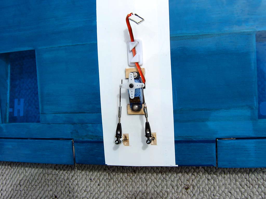 確実なのはやはりロッドリンケージなのでピアノ線の部分を短くすれば重量増加も最小限にすむ。小型機なのでバルサ棒は6×6mm