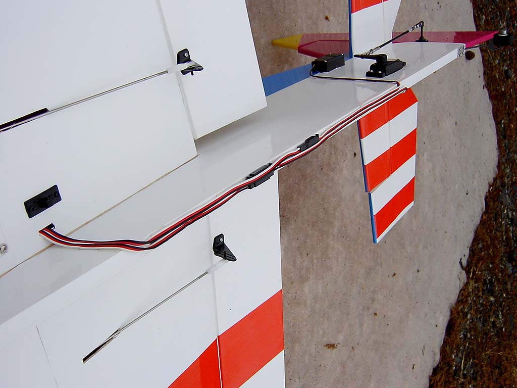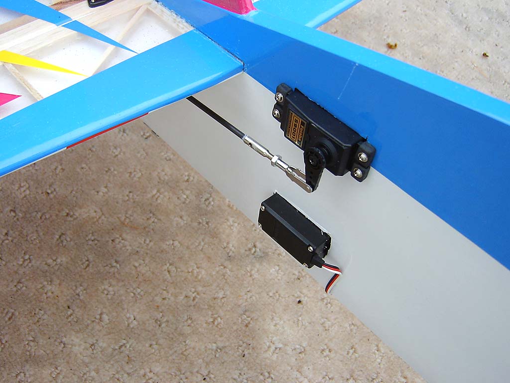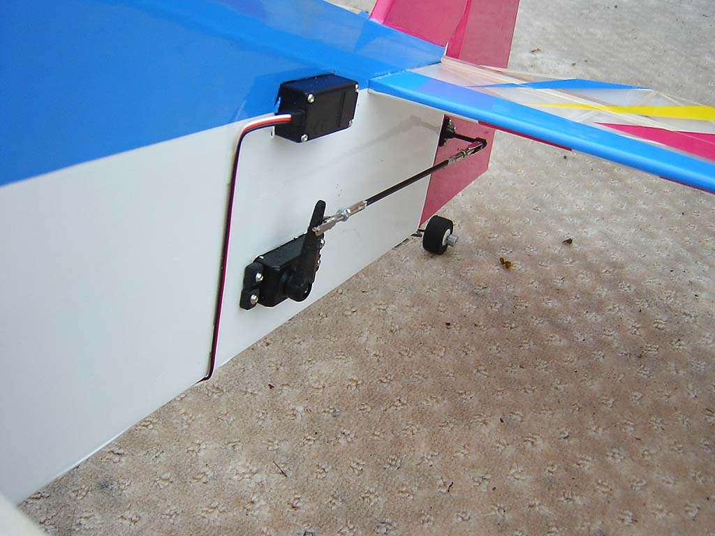 エルロンホーンはテトラ製、安くて良いです。ロッドはボールリンクを使用。これお勧めっすよ、120クラスのスタント機でも使っていたけど200回位の飛行でもガタは出ず、ベアリング入りに比べ激安でしかも高信頼性。