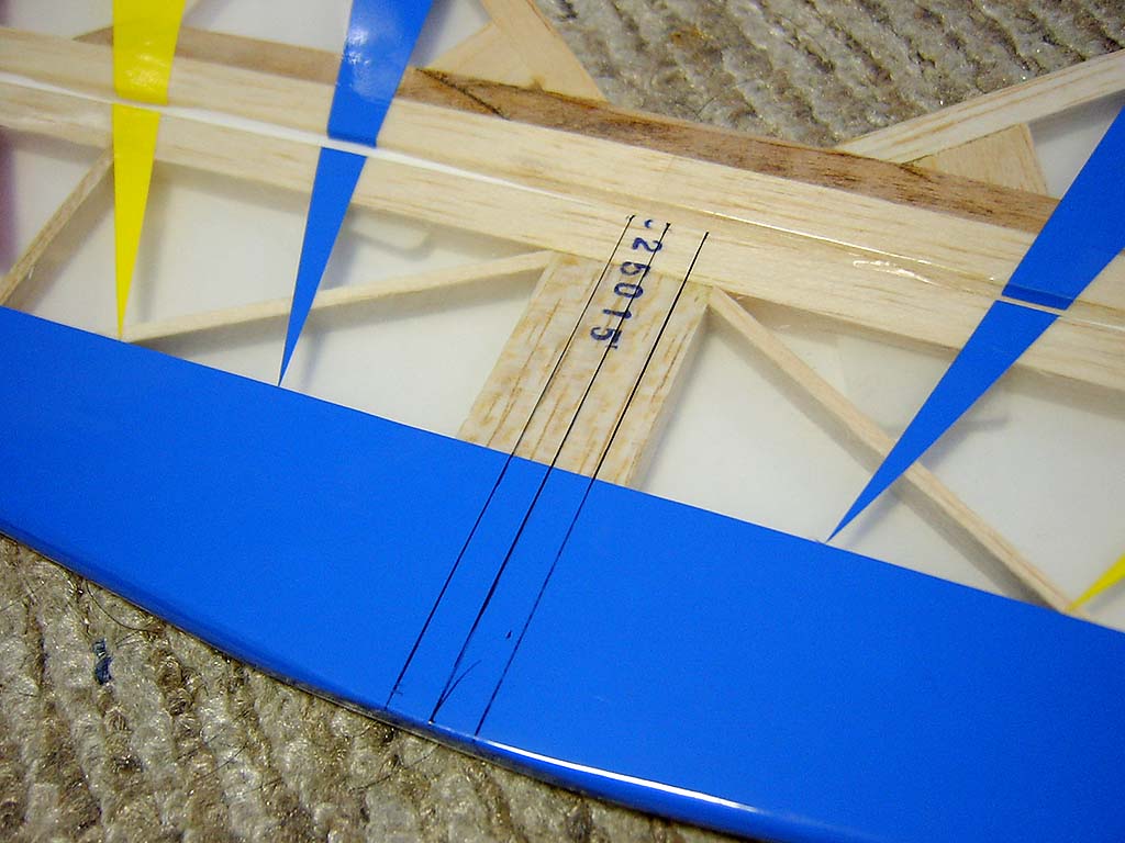 サーボワイヤーは胴体下部をはわせてフイルムでコーティング・・・・はまだ未完成・・・・(汗)