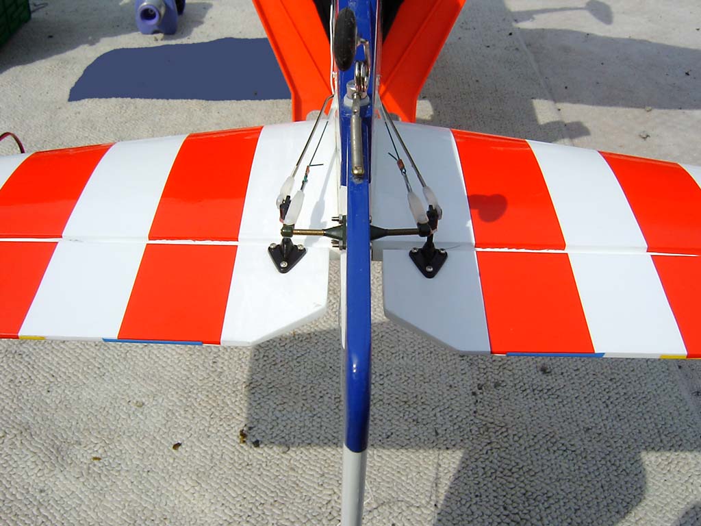 - エレベーターがコの字型の金具で左右を連結してダイレクトリンケージになっているが、エレベーターのクセ取ができないのでサーボの位置を変更してオーソドックスなロッドによる両引きにした方が良い。ついでラダーもワイヤーリンケージの方が良いかも知れない。